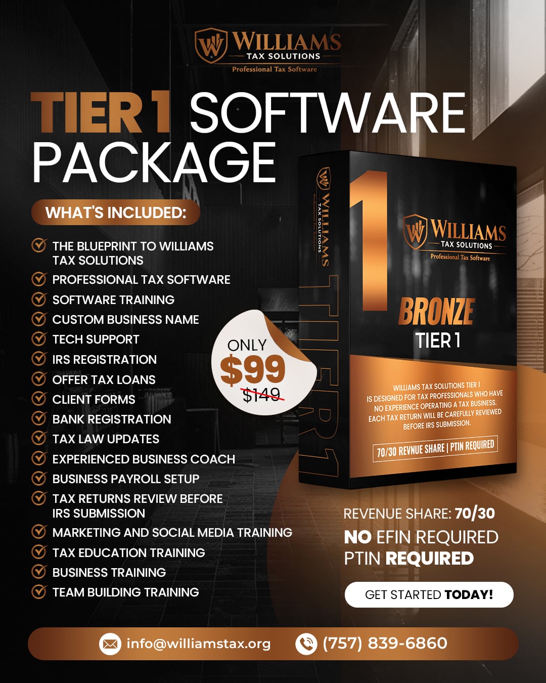 Join our revenue share program today for just $99! You’ll receive 70% of the fees from your client tax preparation, plus benefit from a thorough review of each return prior to IRS submission. Please note that a PTIN (Preparer Tax Identification Number) are required to operate. Equip yourself with the tools to confidently grow your tax business!