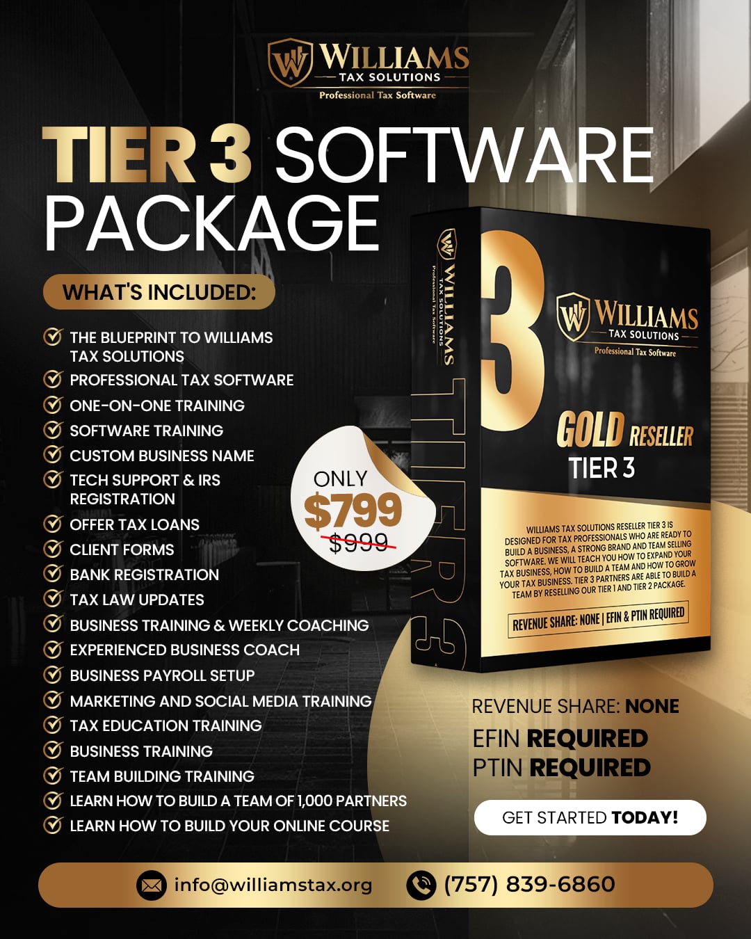 With this package, you can bring on unlimited PTIN & EROs tax preparers, and you keep 100% of your prep fees, doc prep fees, e-file fees, audit fees, and earn a percentage of the service bureau fee. You also gain access to our ERO Support Team Portal to help you and your preparers throughout the tax season with training. An EFIN and PTIN are required to operate under this package.